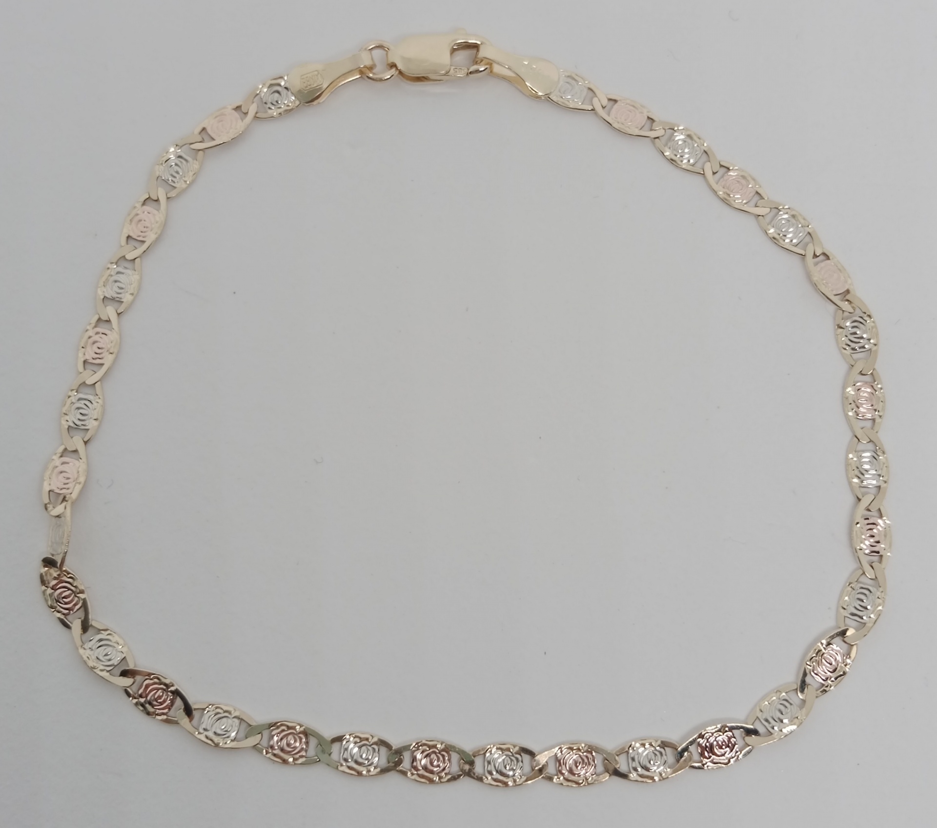 Náramek ze žlutého zlata v kombinaci s bílým a červeným zlatem 585/1000 šíře cca 3mm